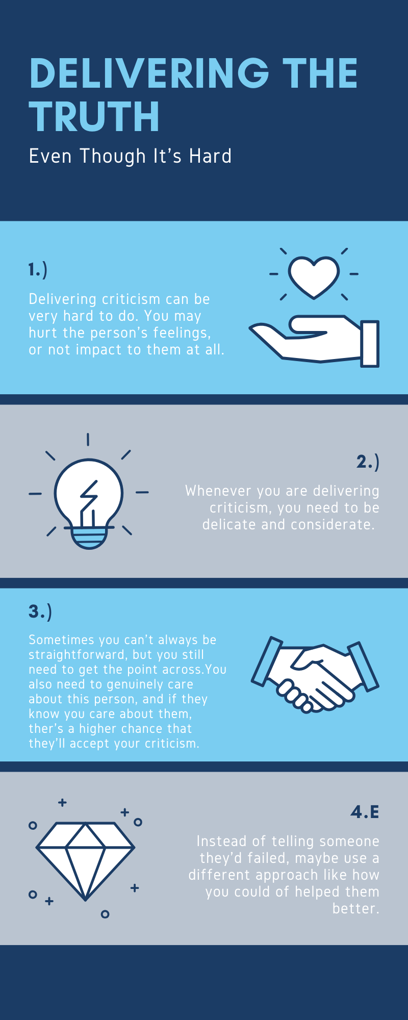You should always do your best to tell the truth. Delivering the truth may be hard but you need to do it. But there may be times when you need to know how to do it, especially if you are delivering criticism.